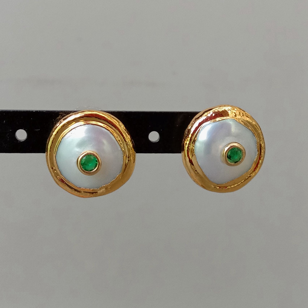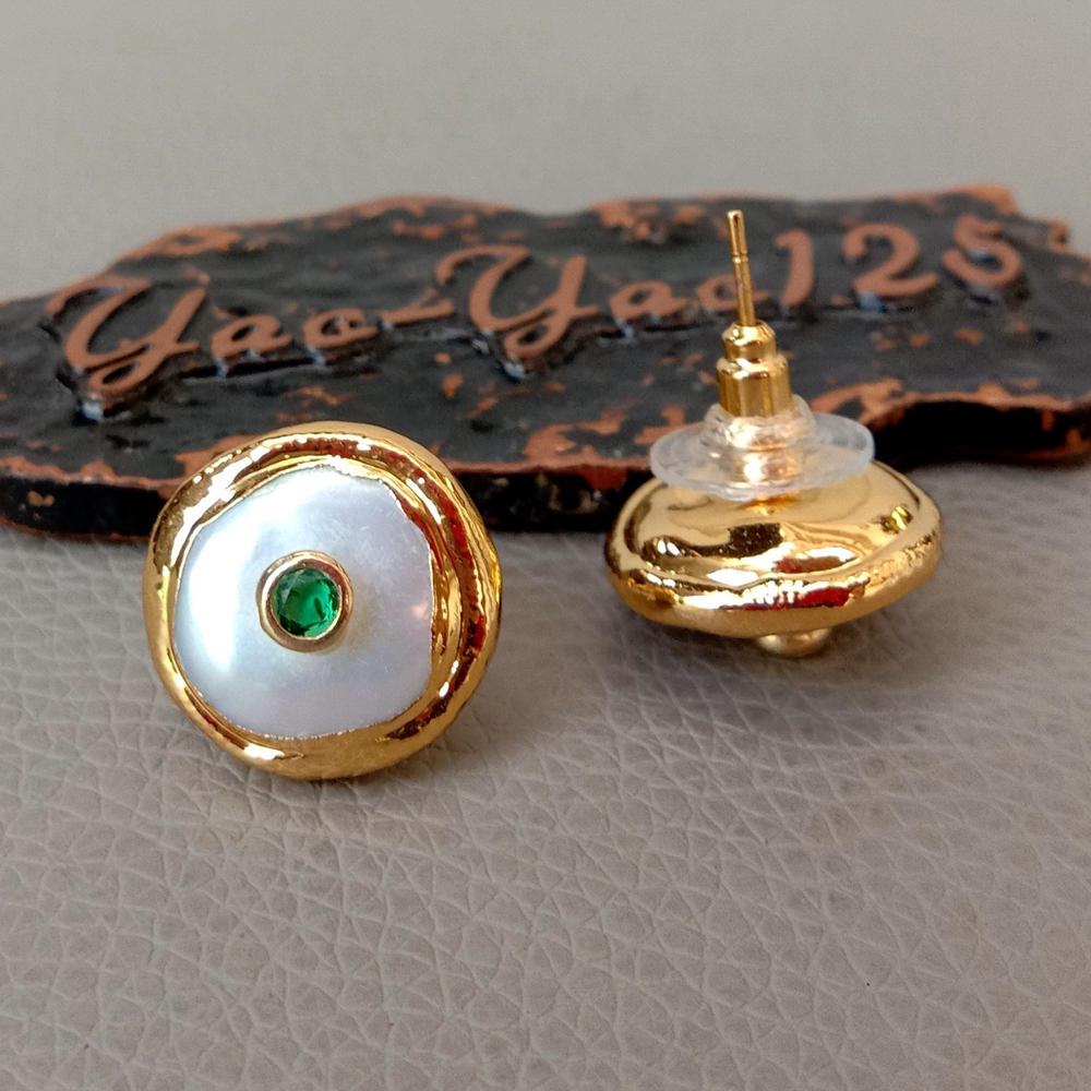 Gems Info: Fresh water cultured pearl. white coin pearl. green Cz. good quality. high luster!
