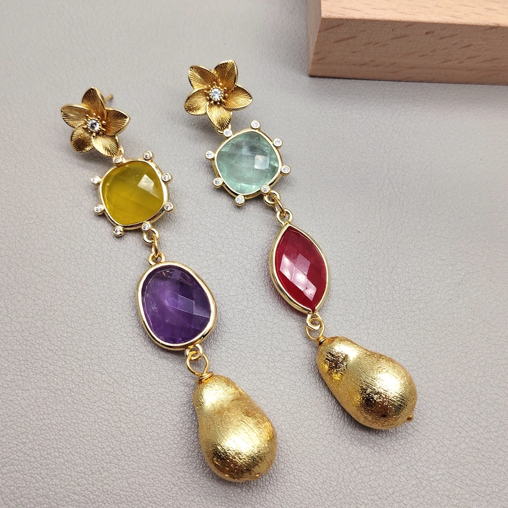 and gemstone. gold plated brushed bead.