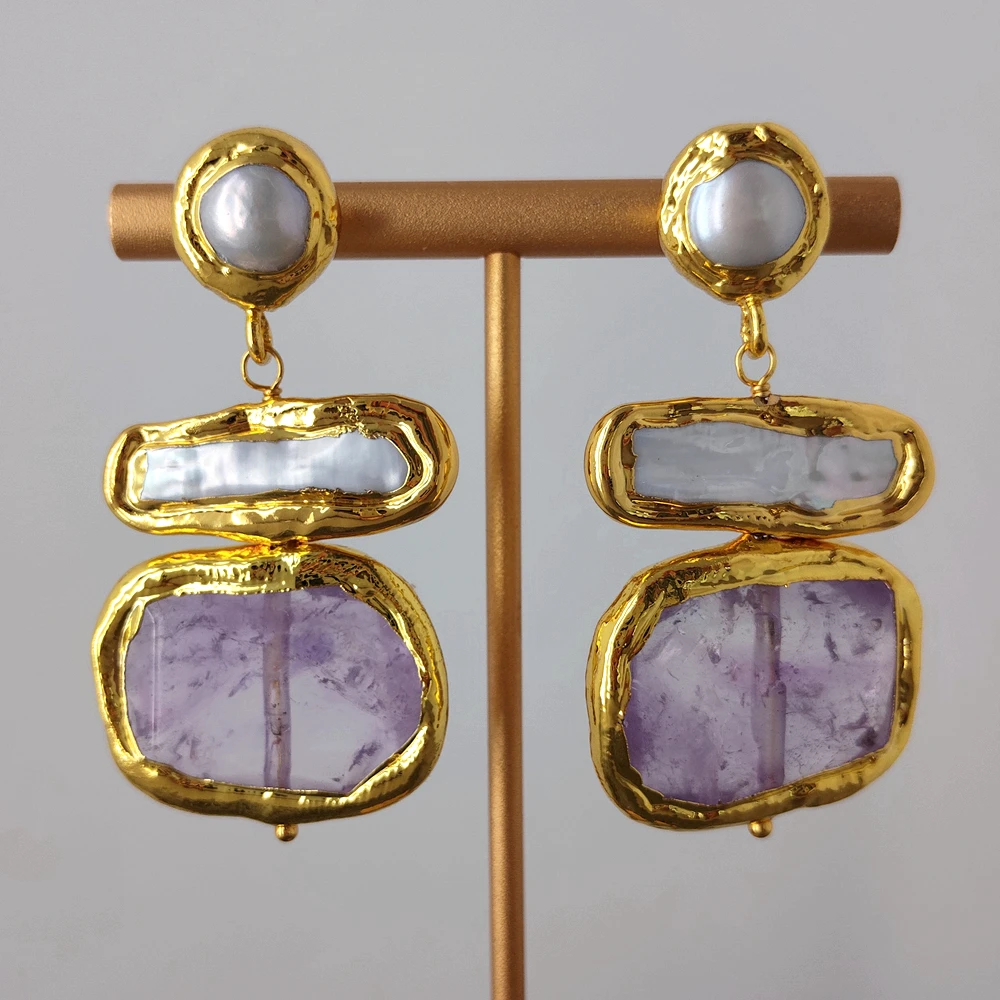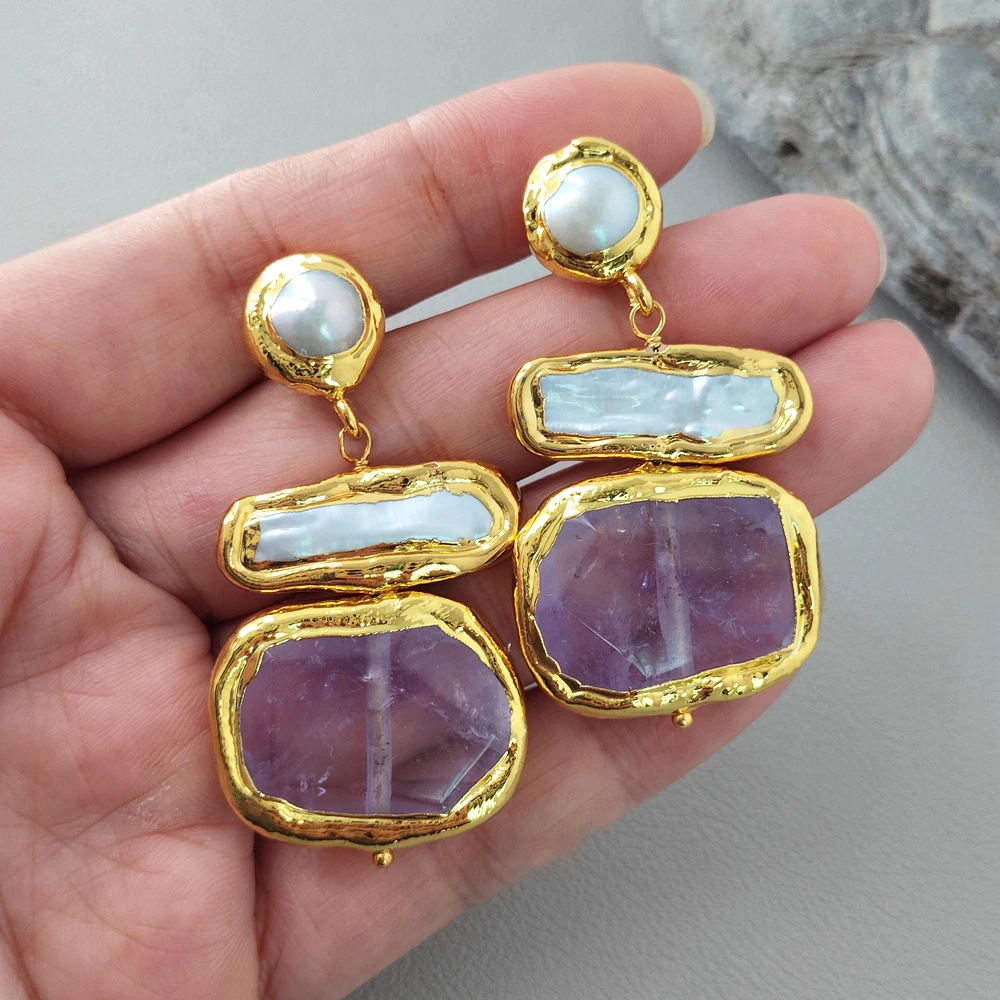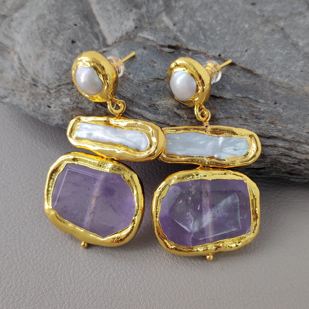 pearl. white Biwa pearl. amethyst chunk. good quality. high luster!