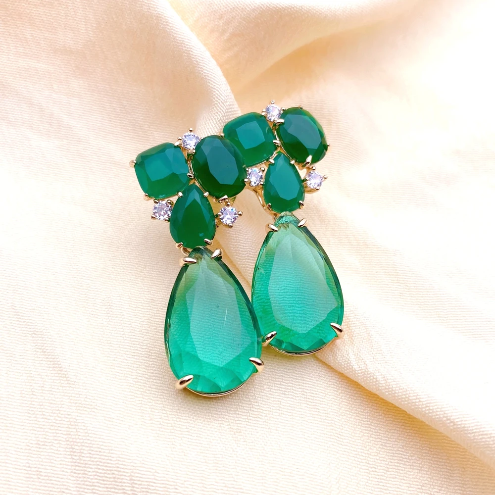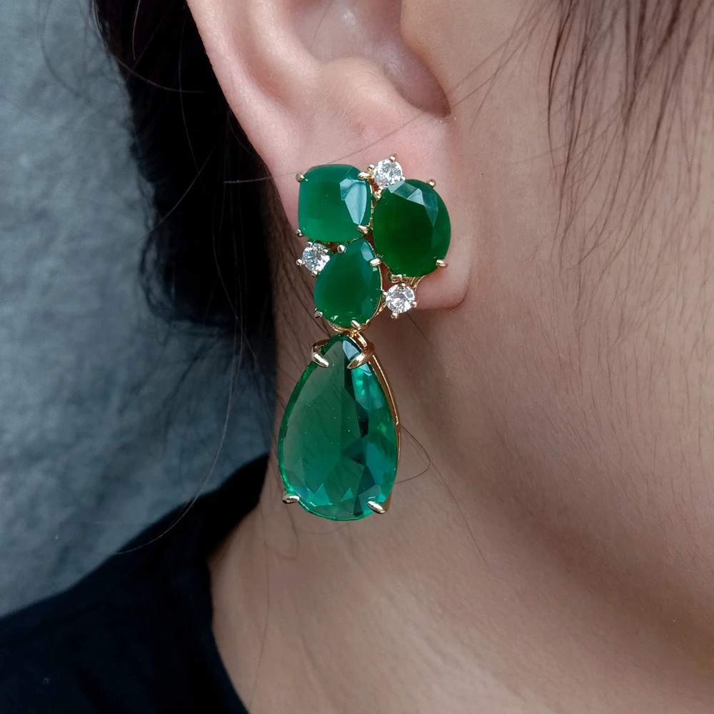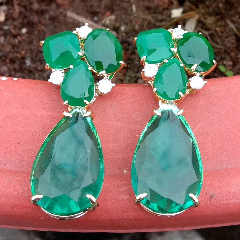 16mm Freshwater White Coin Pearl 24 K Gold Plated Stud Green Cz Earrings