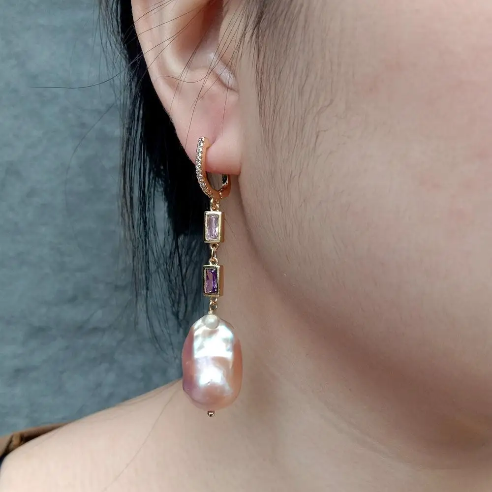 Gems Info: Fresh water cultured pearl. pink keshi pearl. Multi color rectangle cz pave