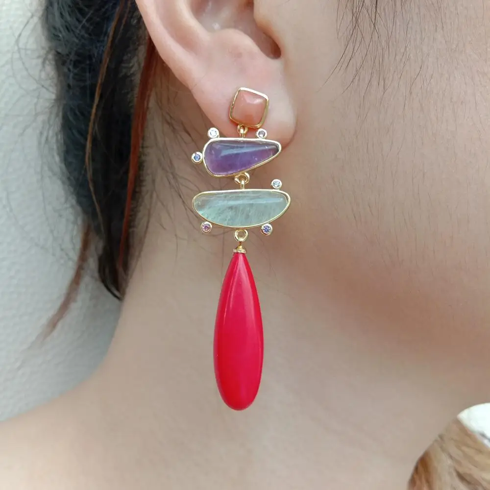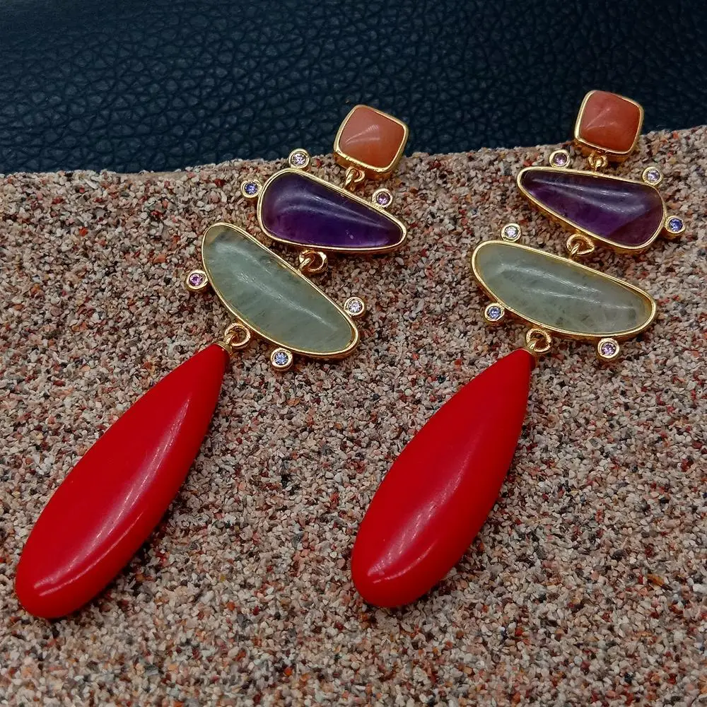 Gems Info: natural Amethyst and Prehnite. teardrop red Turquoise. multi color cz. good quality. high luster!